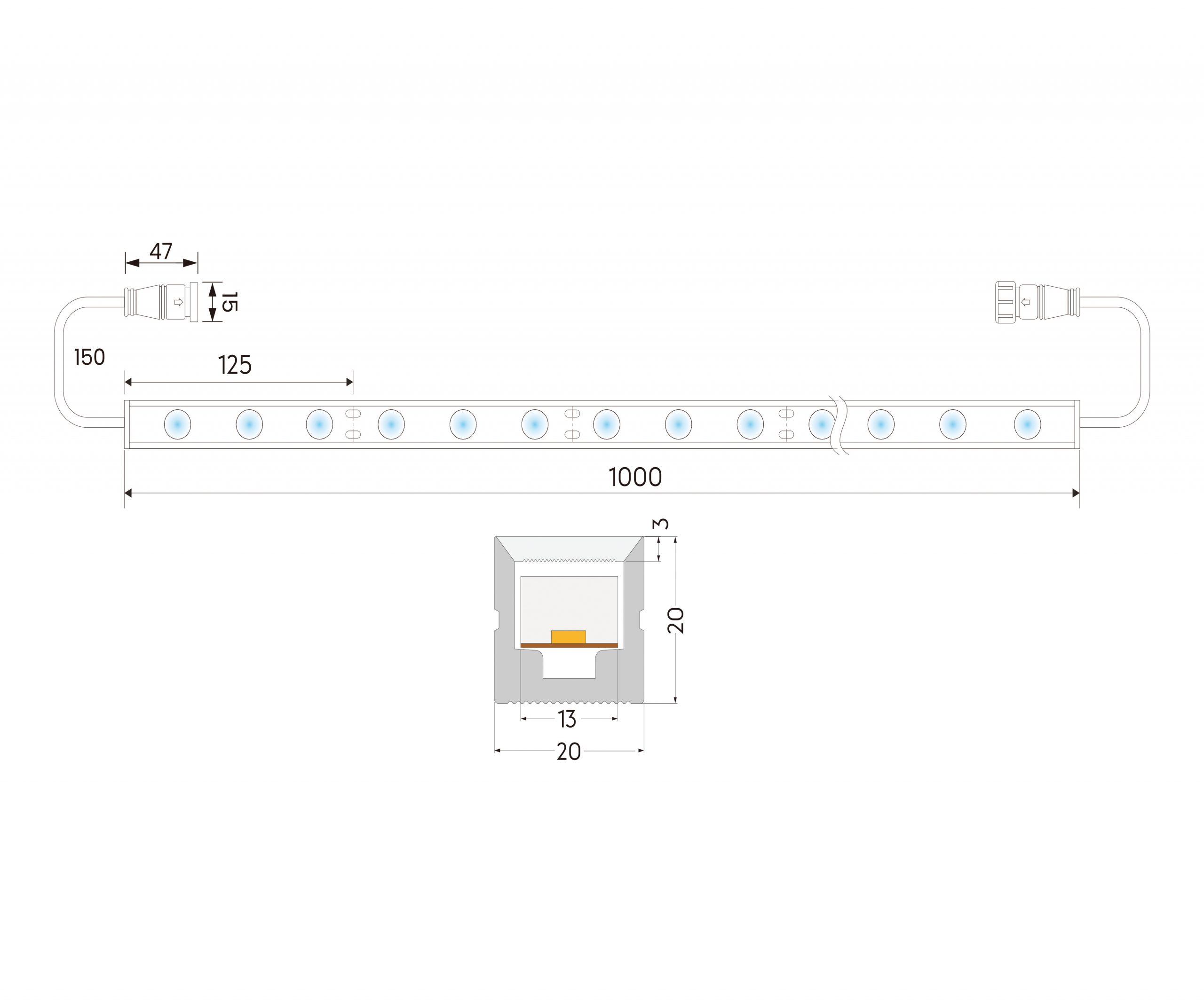 | W12W65-3030XX-024DMX-024S-WY3-2020 | 24V | 2700K | 18W | 3030 | 24 | 8 | IP65 | 90 | 125mm/3LEDs |