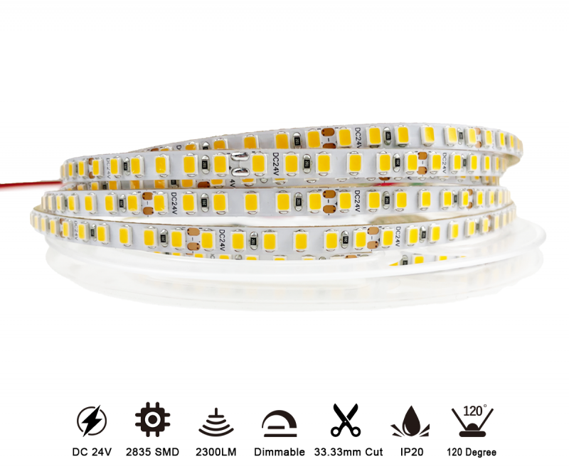 This slim LED strip features 2835 LED chips, with 180 LEDs arranged in sets of 6, operating on DC 24V with a power consumption of 14W per meter, delivering 1020 lm/m. Its standout feature is the 8mm wide, 2Oz copper-clad PCB, which make it perfect for compact profiles and narrow spaces, providing versatile solutions for a variety of lighting applications. Available in color temperatures from 2700K to 6000K, it offers flexible white light options to suit different environments. Designed for energy efficiency, consistent brightness, and long-lasting performance, this strip is cuttable every 33.33mm and rated for 50,000 hours, making it an ideal choice for both decorative and functional lighting projects.